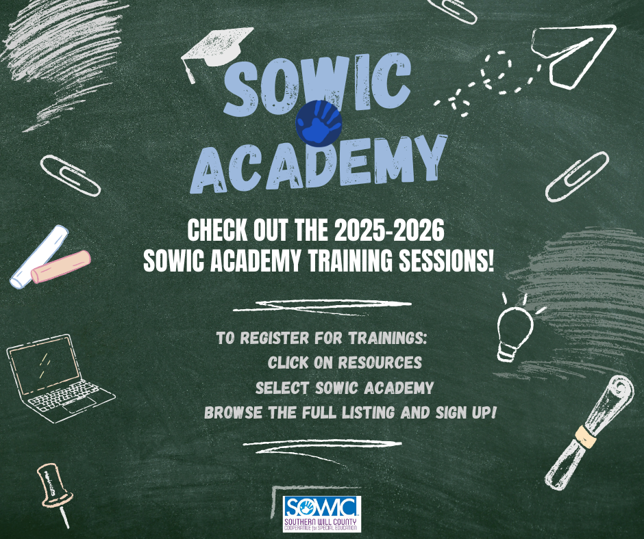 SOWIC Academy is a training program that serves as a resource for both cooperative and member district professionals. The training extension, SOWIC Academy for Families, provides training support for our SOWIC families, including students served in our cooperative programs as well as families of students who attend any of our member districts.
